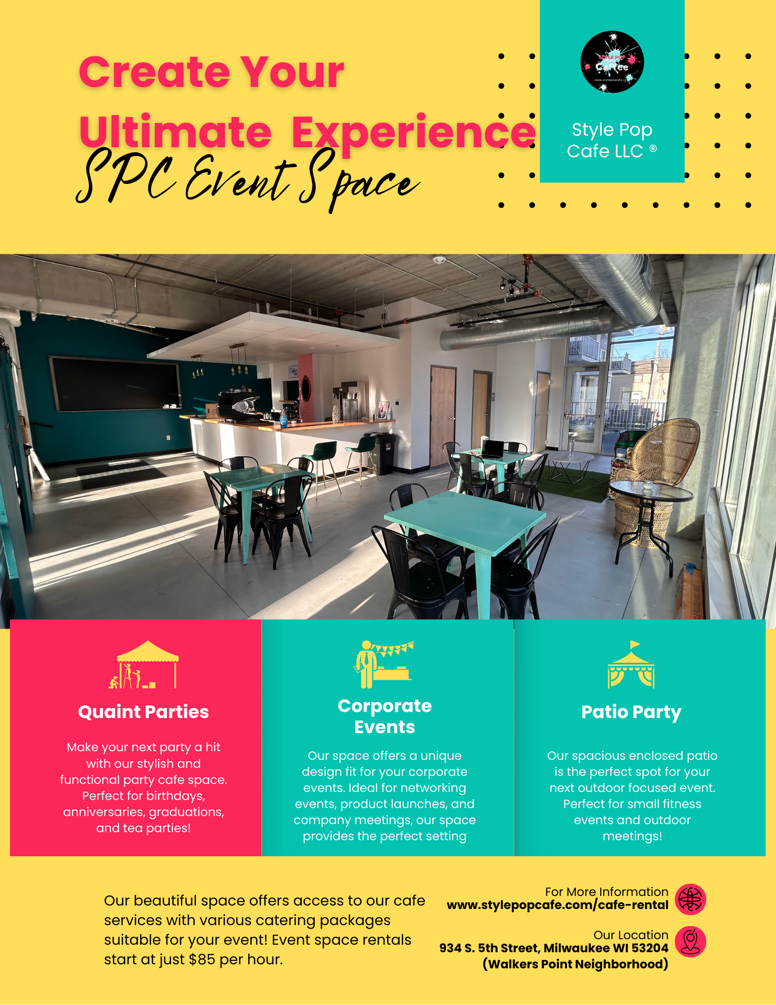 SPC offers a variety of options for events that you can host in our space! From nextworking events, to intimate gatherings, we can work to ensure a successful event.